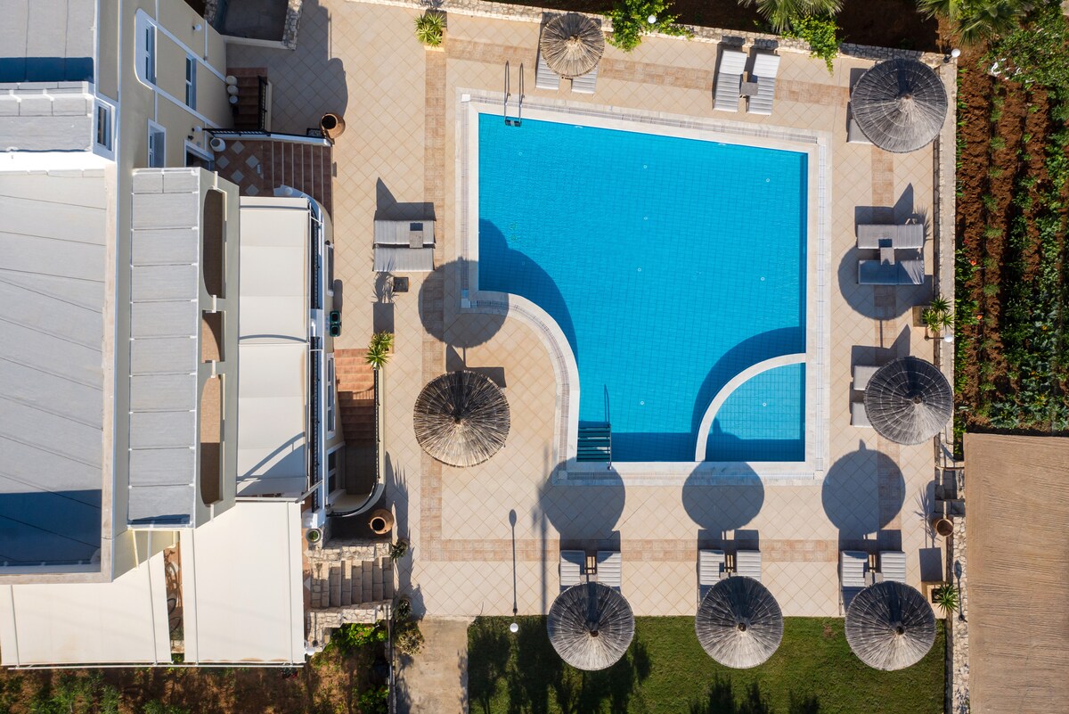 A propriedade está se transformando em OZEA – Elevated Living! Os espaços atualizados estão chegando, com novas fotos em março de 2026. Reserve agora para obter as melhores tarifas e esteja entre os primeiros a desfrutar da experiência renovada! O apartamento ELIA combina design elegante e conforto, com um quarto e um sofá-cama (até 4 hóspedes). Com uma cozinha totalmente equipada, comodidades modernas e uma área externa privativa com vista para a piscina e para o mar, oferece estadias descontraídas e autêntica hospitalidade cretense.