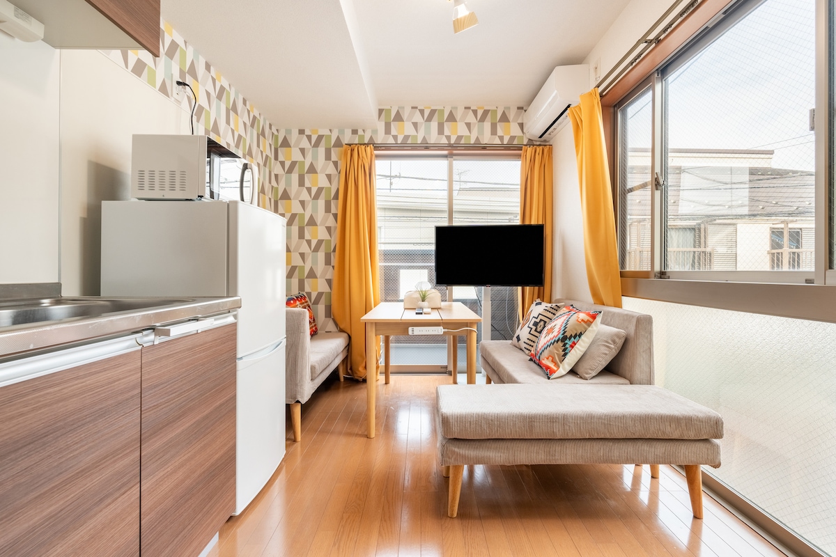 A apenas 2 minutos a pé da estação, a Palette House é um refúgio aconchegante e elegante perfeito para explorar Tóquio. A cozinha de estilo industrial inclui um balcão central, utensílios de cozinha completos, taças de vinho e um bebedouro, ideal para cozinhar e preparar bebidas à noite. A sala de estar tem decoração de madeira natural e um sofá confortável, enquanto o quarto moderno-japonês oferece um espaço refinado e relaxante. Com comodidades atenciosas e design acolhedor, é a base perfeita para casais e famílias.