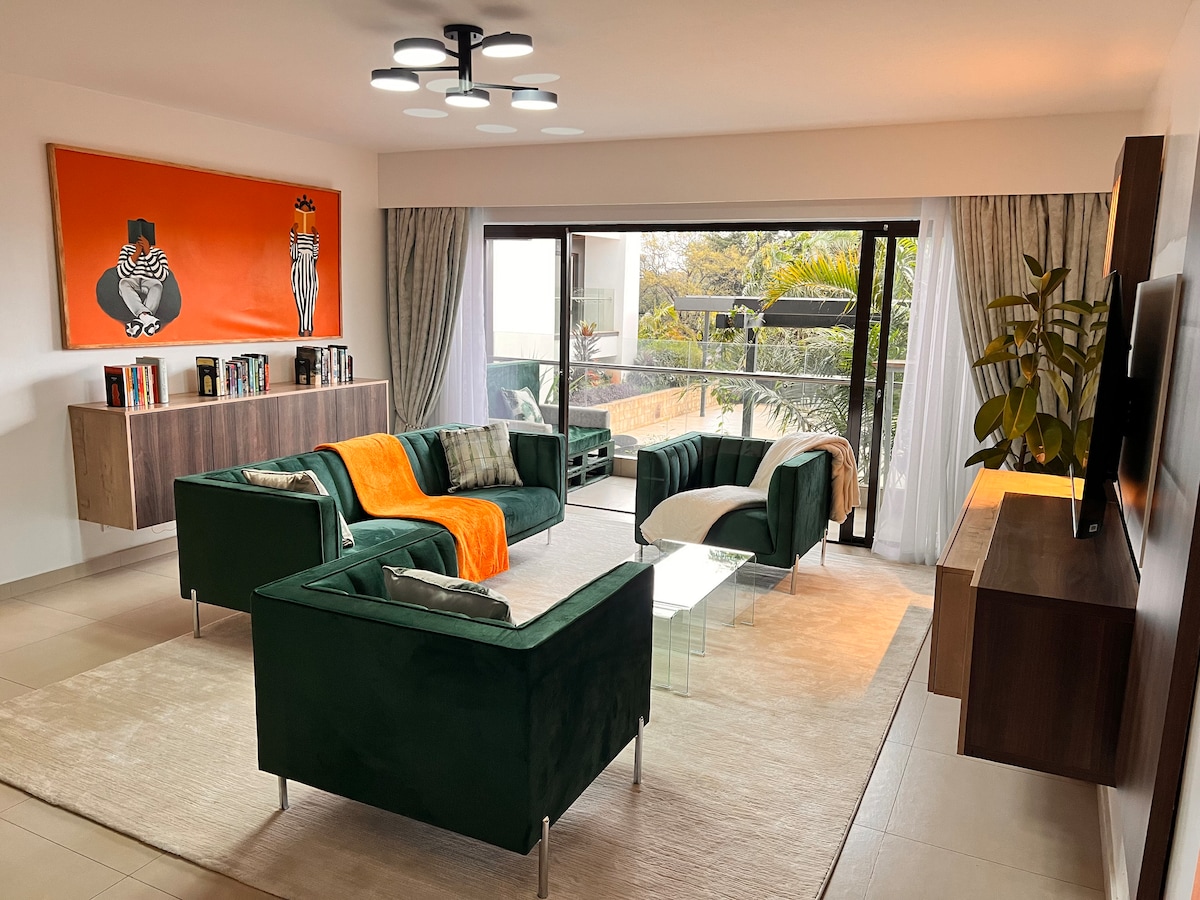 Acorde com vistas deslumbrantes do horizonte de Nairóbi neste elegante apartamento de 2 quartos situado em Lavington seguro e tranquilo. Ideal para viajantes de negócios, famílias, casais e hóspedes de longa duração que procuram conforto e conveniência. Apenas a 3 minutos a pé de um mercado de alimentos 24 horas e um shopping, e nas proximidades de áreas influentes dentro de Nairóbi para facilitar o acesso a negócios, restaurantes e entretenimento.