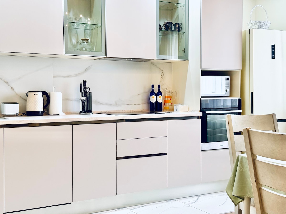 Apartamento reformado em fevereiro de 2025! Limpeza e conforto perfeitos! O apartamento está equipado com um guarda-roupa, máquina de lavar, secador de roupa, tábua de passar, ferro, banheiro privativo com chuveiro ou banheira, secador de cabelo embutido e todos os produtos de higiene pessoal, internet de alta velocidade e TV a cabo, smart TV de 42 polegadas, colchões ortopédicos confortáveis, cortinas black-out. Você pode cozinhar como em casa, a cozinha está equipada com utensílios básicos