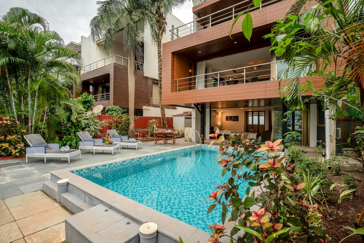 ***Como destaque na Architectural Digest India em agosto de 2022, bem como Elle Decor e Design Pataki !!*** Nossa bela cobertura está localizada na pitoresca vila de Nerul, com vista para arrozais verdes e rio Nerul. A atração de destaque é a deslumbrante piscina de mergulho, que será para seu uso privado, e um terraço encantador e espaçoso para desfrutar desses incríveis pores do sol. O refúgio romântico perfeito!