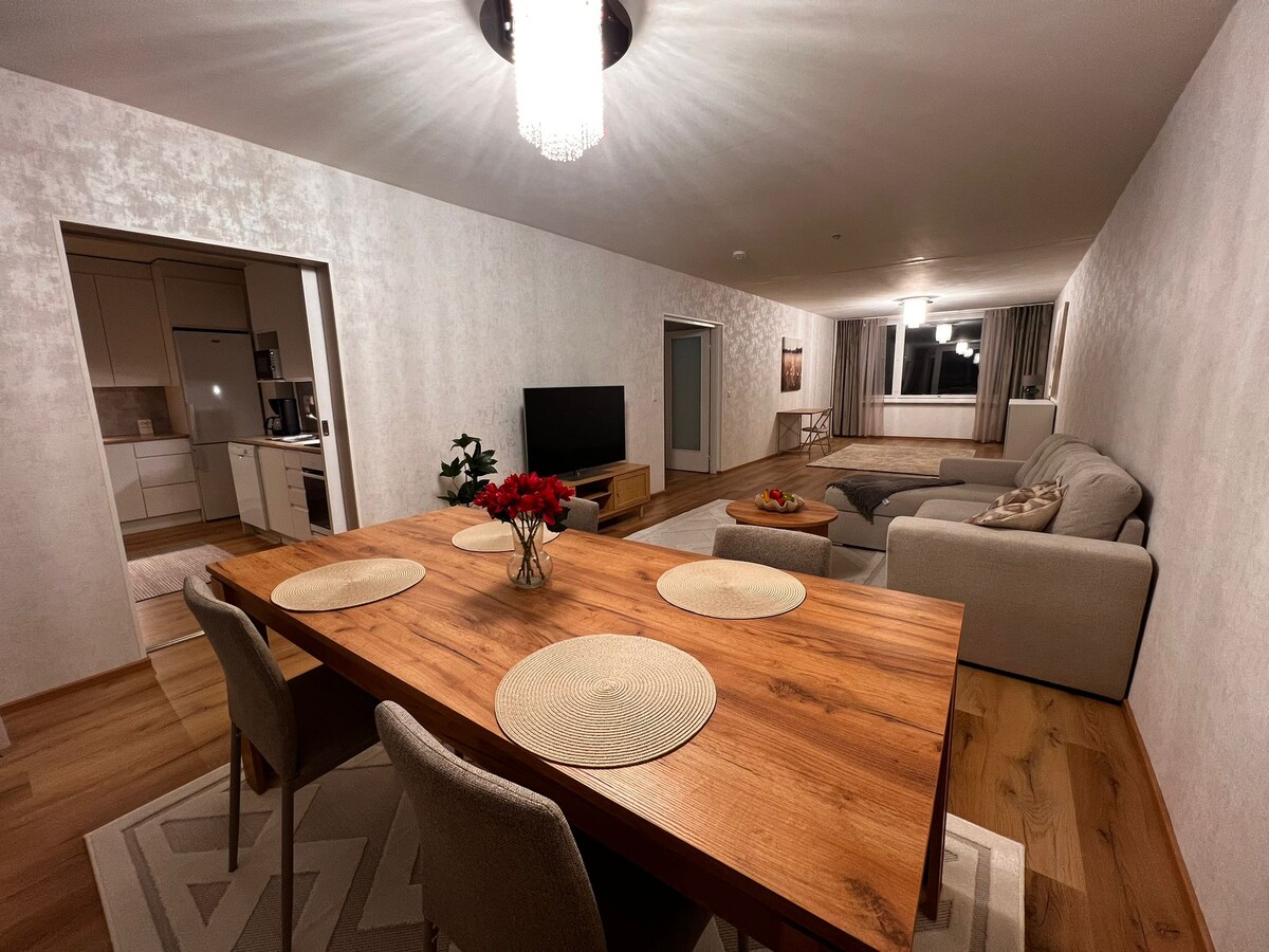 Relaxe neste apartamento acolhedor e elegante recém-renovado. A área residencial é tranquila. É fácil e rápido chegar ao apartamento a partir da rodovia! Você pode chegar depois das 15h em seu próprio horário. Se necessário, por favor, peça um check-in antecipado. *Roupa de cama e toalhas grandes estão incluídas no preço. *Vaga de estacionamento gratuita. Local de aquecimento próprio ou local de hóspedes da associação de habitação (6 pcs) *Bicicletas gratuitas à sua disposição *Café/chá/chocolate quente de cortesia * TV Android de 55" *Cortinas blackout *A limpeza está inclusa no preço