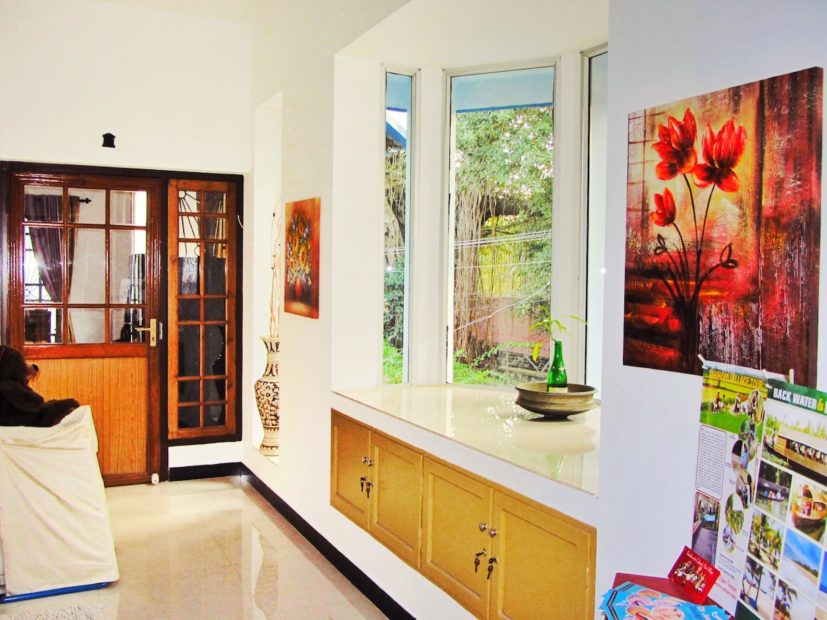 Ivy HOMES é um apartamento de 3 quartos totalmente mobiliado, no piso térreo em Kakkanad, perto do InfoPark e CSEZ. Este é um HomeStay aprovado pelo Governo de Kerala e classificado como categoria Ouro. Esta propriedade, incluindo a sala de estar e a área de jantar, são climatizadas. Wi-Fi duplo de alta velocidade, estacionamento e cuidador estão disponíveis. Esta é uma propriedade para não fumantes. Esta é uma propriedade gerenciada profissionalmente e nossa equipe se esforça para oferecer uma experiência consistente de hotel 3 estrelas, quase todas as vezes!