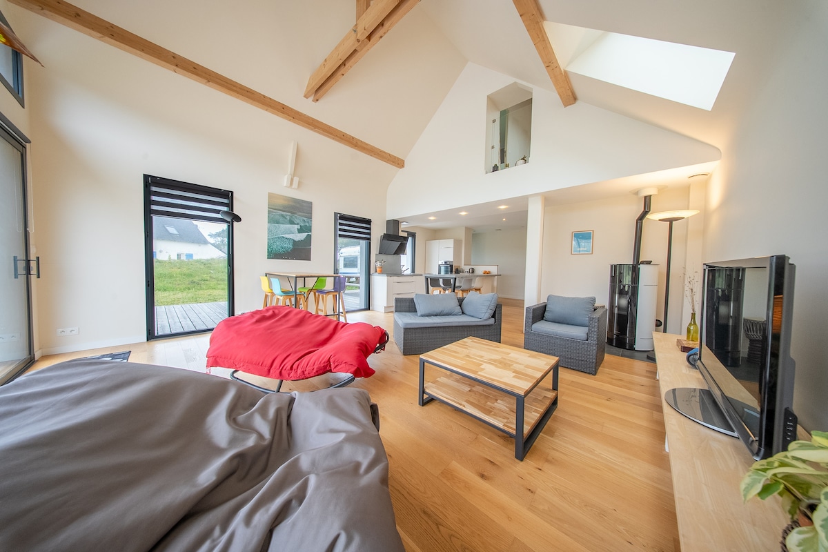 Casa nova confortável e ecológica localizada a 4 minutos da praia e a 15 minutos de Carnac. Acesso para cadeira de rodas. Composto por uma suíte master no piso térreo (quarto com chuveiro) e três quartos no andar de cima. O banheiro no andar de cima está equipado com um SPA de dois lugares. Cozinha aberta para uma grande sala de estar. Terraço voltado para o sul em um ambiente muito relaxante Aceitamos animais de estimação bem-comportados.