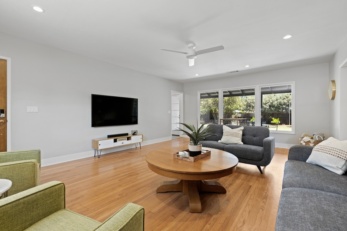 Casa Visalia de meados do século com carregador de veículos elétricos e churrasqueira