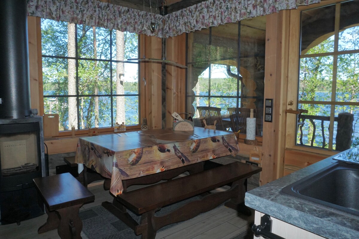 O DESTINO DE FÉRIAS MAIS POPULAR NO DISTRITO DO LAGO SAIMAA Caro Visitante da Finlândia, venha desfrutar de umas férias extraordinárias na nossa Cabana de Toras KELO, mobiliada luxuosamente e única no mundo, feita de precioso pinheiro prateado. A cabana com sua própria sauna e cais está situada na margem do lago mais claro da Finlândia!
