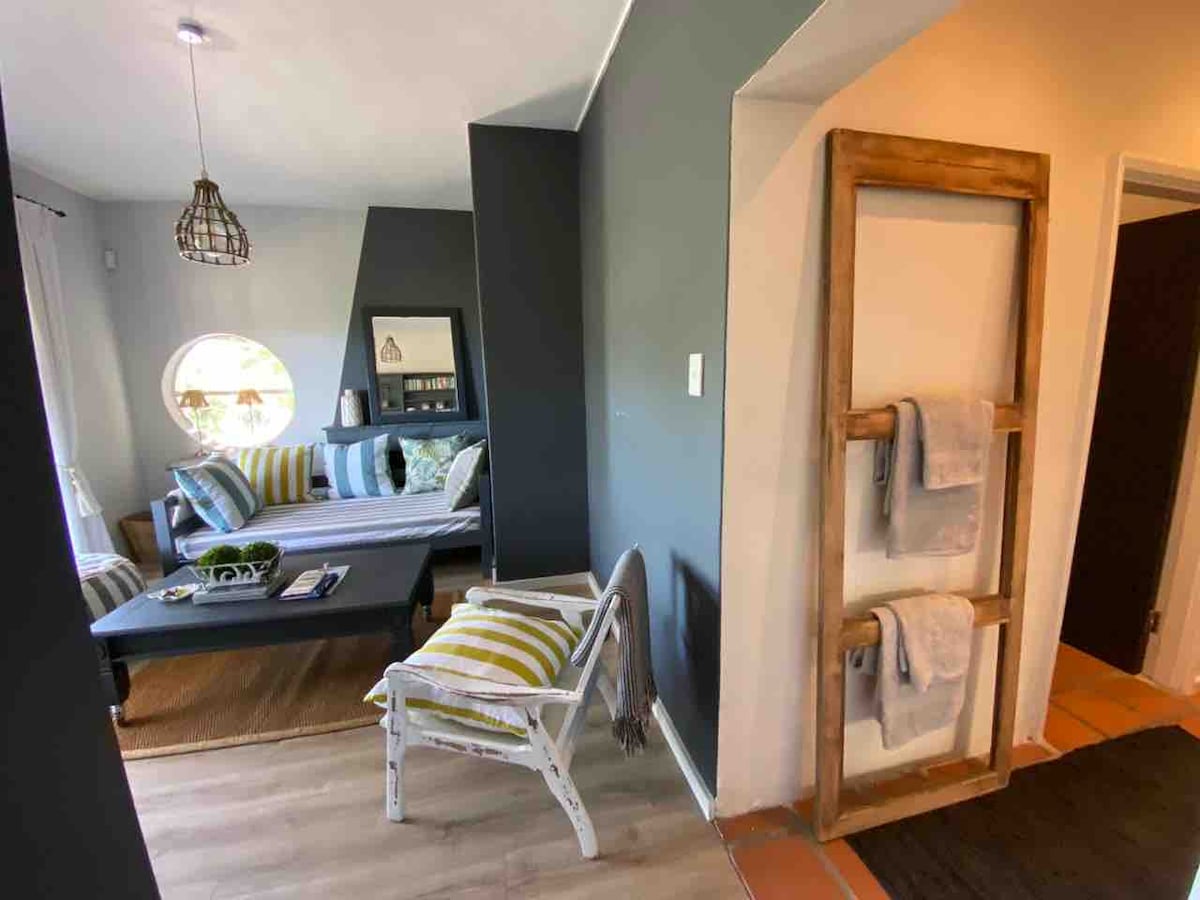 Esta elegante casa de campo privada e descontraída recentemente renovada com energia solar é um local perfeito para famílias ou casais que desejam experimentar tudo o que a Rota do Jardim tem a oferecer. Situado no rio Bitou, a apenas 6 km da Baía de Plettenberg. Conhecida por sua vida de pássaros, ciclismo e trilhas de corrida e longe o suficiente da cidade para experimentar um ritmo de vida mais lento. A 5 ou 10 minutos de carro das nossas propriedades vinícolas de renome mundial mais próximas e várias praias de bandeira azul à sua escolha.