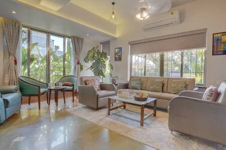 RATNADEEP VILLAS - vilas boutique ultramodernas localizadas no coração de Lonavala… a apenas 1,5 km da estação ferroviária. O espaço de estar é aconchegante, contemporâneo e convidativo, com muita luz solar e grandes janelas com vista para a vegetação. Você pode desfrutar do pôr do sol no terraço coberto, dar um mergulho na piscina privativa ao ar livre, relaxar no jardim exclusivo ou relaxar no bar privativo. Há um gerador de reserva também para mantê-lo confortável em caso de falta de energia.