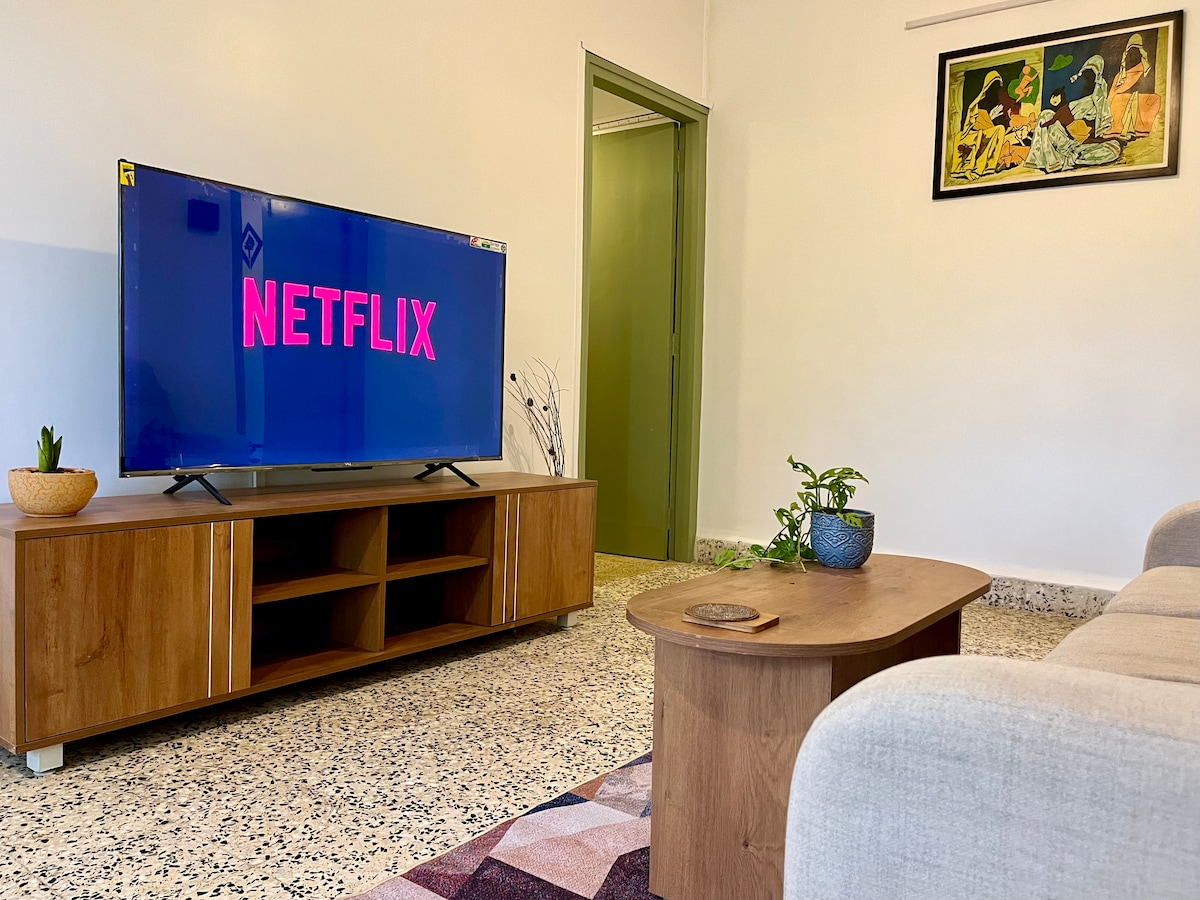 Instaworthy 1BHK com banheira, Smart TV e Chill