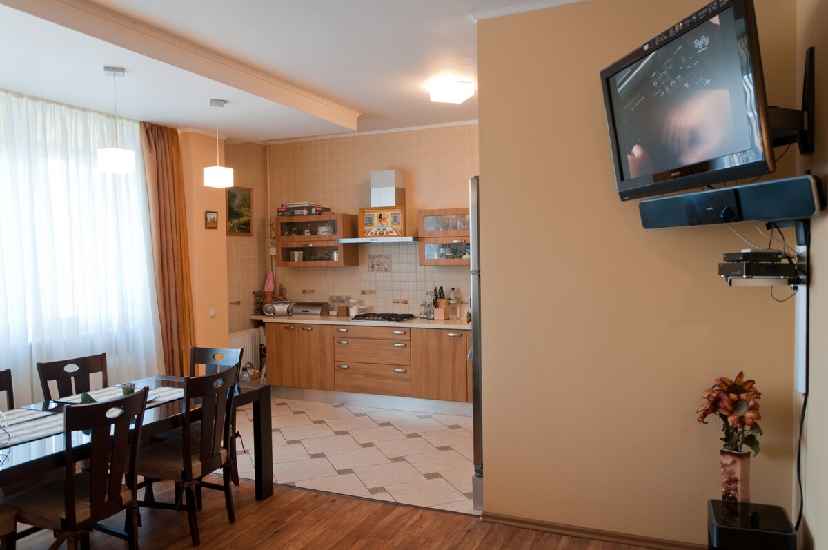Um grande apartamento elegante de 3 quartos. Os quartos são separados. Ótima localização no centro da cidade. Apartamento aconchegante, tetos altos, móveis de couro, cozinha, vaso sanitário, banheiro, 2 varandas, internet Wi-Fi, tem tudo o que você precisa para uma estadia confortável.