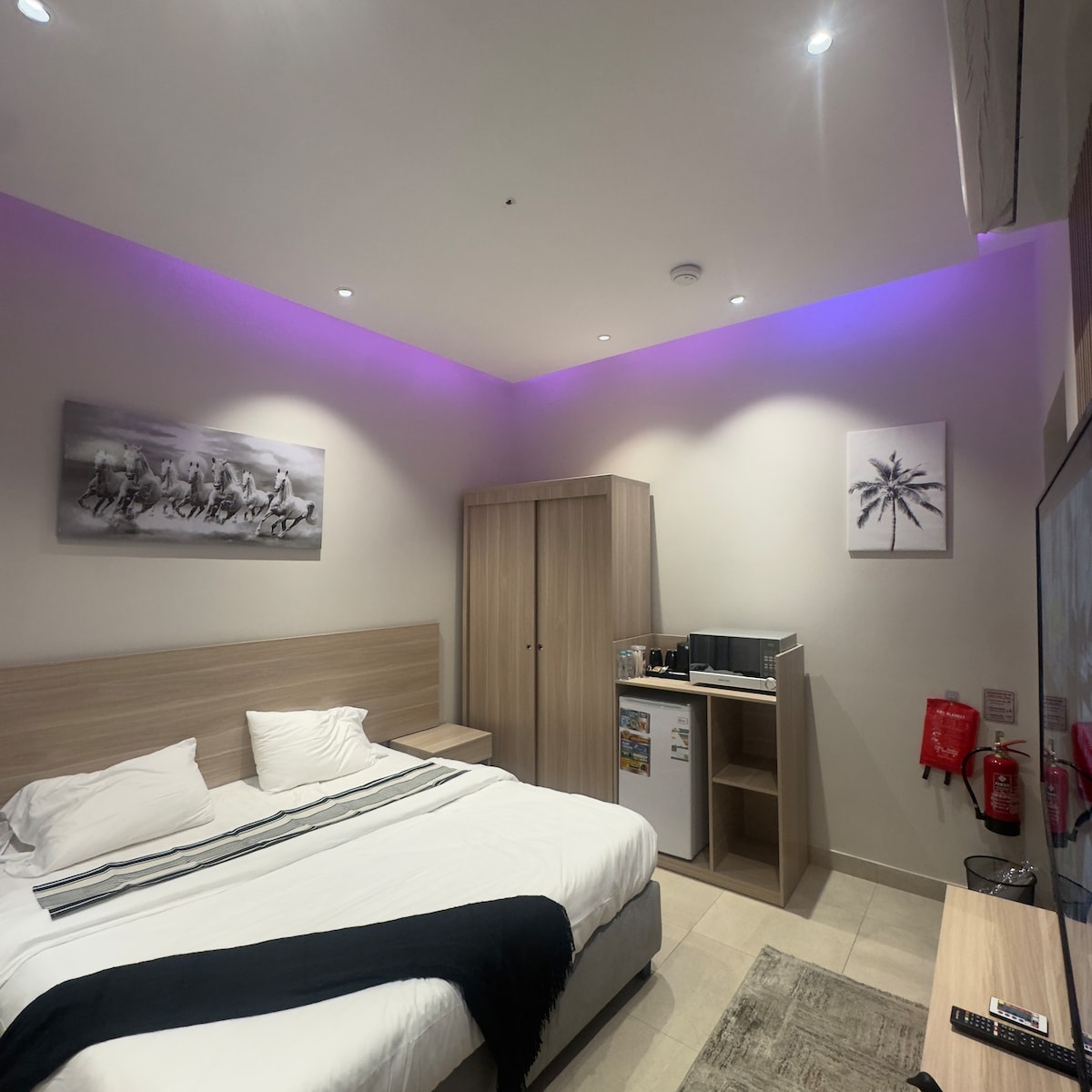 O estúdio tem : self ✅check-in ✅ Wi-Fi rápido Smart ✅TV Samsung ✅ Lenços de papel ✅ Moya ✅ toalhas ✅Ar-condicionado muito frio Estacionamento ✅ gratuito ✅ Refrigerador ✅ Chaleira e chá Sabonete e xampu de hotel ✅ Localização: ✅ O estúdio fica em um bairro tranquilo e seguro e perto de serviços como restaurantes, cafés, mercados e mesquitas