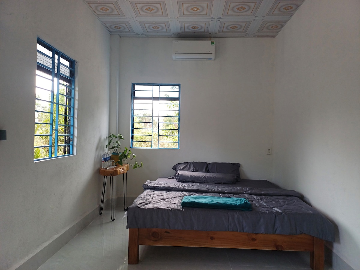 This luxurious and cozy studio offers all the amenities for a relaxing family vacation on Phu Quoc Island. Located in a tranquil tropical forest, just under 2km from Ong Lang Beach, this studio provides a memorable experience. Enjoy modern kitchen appliances and a garden barbecue area with fruit-bearing trees. Start your day with a cup of coffee, the sunrise and the delightful sound of birds singing. We are confident that you will have an exciting and relaxing experience at this studio.