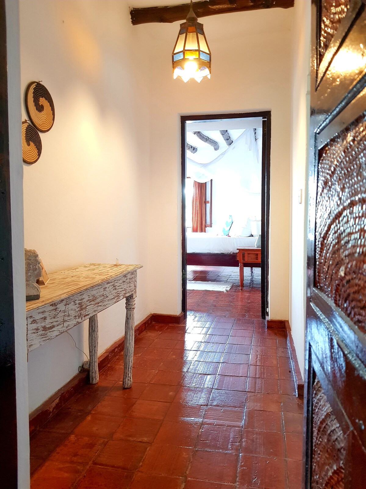 Welcome to Angaza House . A 1 bdrm apt in Shanzu in a quiet , serene environment with parking , AC , pool , restaurant , bar and greenery . It is —> 2 - 5 mins drive from Serena beach, Pride inn Paradise , Flamingo beach resort . Angaza is a Swahili word that means to light up / illuminate . Having been born and bred in the coastal city of Mombasa , the decor is inspired by the rich Swahili culture coupled with modern infusions.
