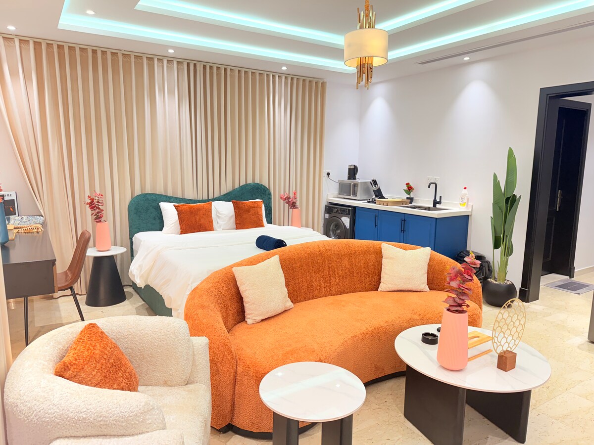 Bem-vindo ao nosso estúdio elegante em South Ubhur, Jeddah! Ideal para casais ou viajantes solitários, desfrute de uma estadia confortável com uma cama king-size, TV inteligente e cozinha equipada. O banheiro elegante oferece um chuveiro e produtos de higiene pessoal. Conecte-se com Wi-Fi e relaxe no conforto do ar-condicionado. A poucos passos de atrações locais, lojas e restaurantes, nosso estúdio é perfeito para explorar a rica cultura de Jeddah. Experimente uma estadia inesquecível nesta cidade cativante!