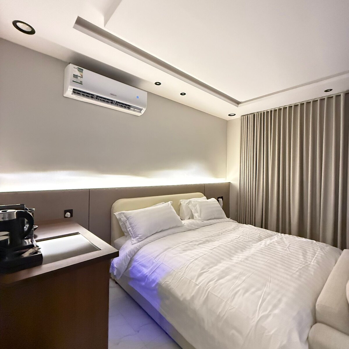 Bem-vindo ao nosso apartamento, que oferece uma estadia excepcional que excede suas expectativas. O apartamento possui um quarto equipado com os melhores colchões, além de uma sala separada com sofás confortáveis e uma tela inteligente de 65 polegadas para desfrutar (Netflix, Shahid, BeIN) + Wi-Fi. A cozinha está totalmente equipada para atender a todas as suas necessidades. Há uma área externa com design rústico e vista privilegiada para o centro financeiro, adequada para eventos e reuniões com familiares e amigos. O apartamento está equipado para estadias curtas e longas. A localização é maravilhosa, no coração da cidade, perto de atrações turísticas, serviços e restaurantes.