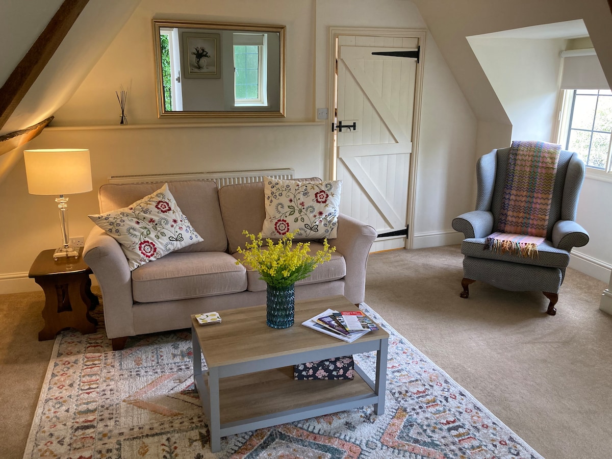 An independent, first floor, apartment in a 200yr old cottage. 1 bedroom available as superking bed or twin beds. Separate living room with kitchenette, combination microwave/oven/grill, single zone hob, toaster, kettle and full size fridge. Bathroom with shower. Free WiFi. Private, off road parking outside cottage. Secure garage space available upon request, for locking up bicycles, fishing tackle, golf clubs etc. Set in a lovely, quiet, village with two pubs & coffee shop in walking distance.