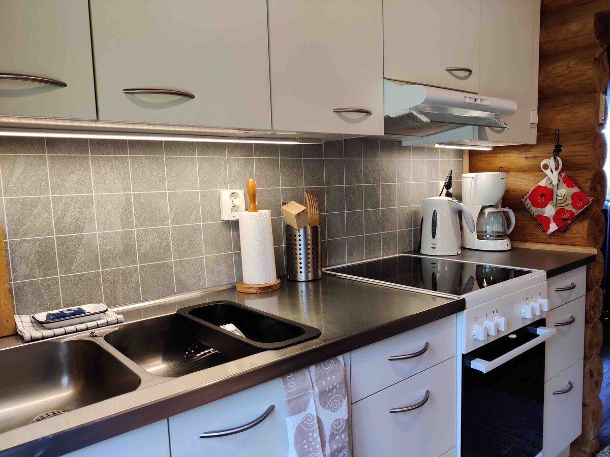 Cabana eletrificada com boa vista para o lago. Grande terraço, cozinha de verão, sauna ao ar livre, fogueira (conforme acordo), várias fogueiras, fogão a gás, grelha a gás, geladeira e armário com um pequeno compartimento de congelador. Espaço para um grupo de 6 pessoas. Barco a remo com motor elétrico disponível. Água corrente do lago. (Água potável em galão disponível na cabana.) A sauna tem chuveiros de viagem elétricos. Lago de peixes e caça de caça menor (de acordo com o contrato) possível. Serviço de lavanderia disponível para hóspedes de longa duração.