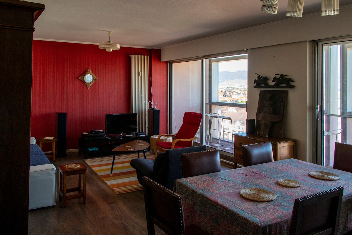 No coração do centro de Colmar, no bairro do Triângulo Dourado, apartamento Haussmann de 100 m2 com tetos de 3,30 m de altura, localizado no 1º andar de uma mansão com vista para o parque Champ de Mars. Não há elevador. Classificação de 4 estrelas pela Prefeitura. Estacionamento incluído, (coberto e monitorado em frente ao apartamento). Animais de estimação permitidos apenas mediante reserva e contra participação financeira (taxa fixa de € 20).