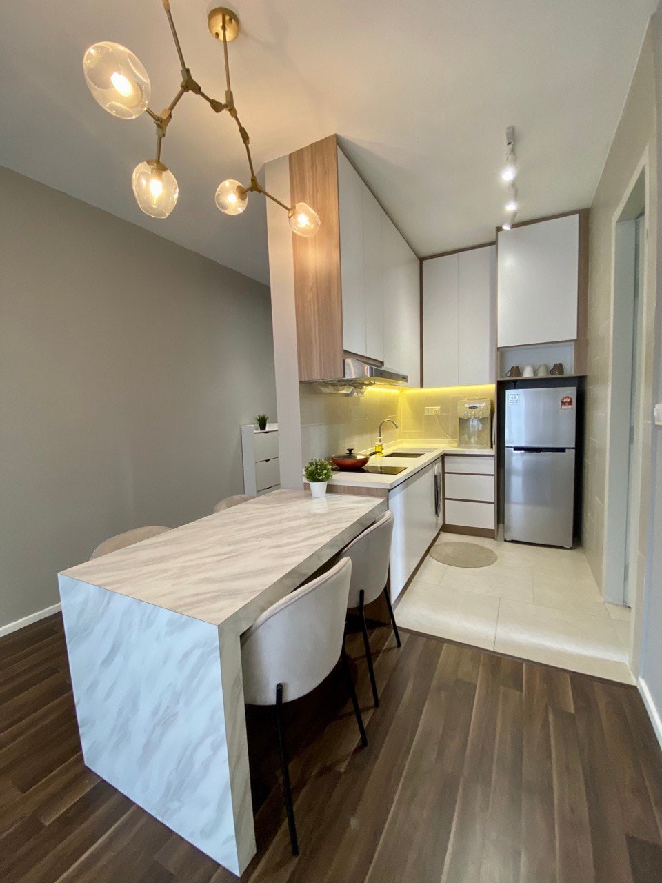 StarSuiteAC – Estadia de luxo acima das nuvens! Um duplex luxuosamente projetado no piso alto, oferecendo uma vista deslumbrante do horizonte KL. Relaxe sob o teto estrelado parecido com uma galáxia e experimente uma estadia como nenhuma outra! Desfrute de uma sala de karaokê à prova de som, bilhar e air hockey, e um cinema em casa com som surround para uma verdadeira experiência cinematográfica. Instalações: cozinha, geladeira, micro-ondas, panela de arroz, fritadeira, filtro de água, máquina de lavar roupa (com secador), cadeira de massagem, etc.