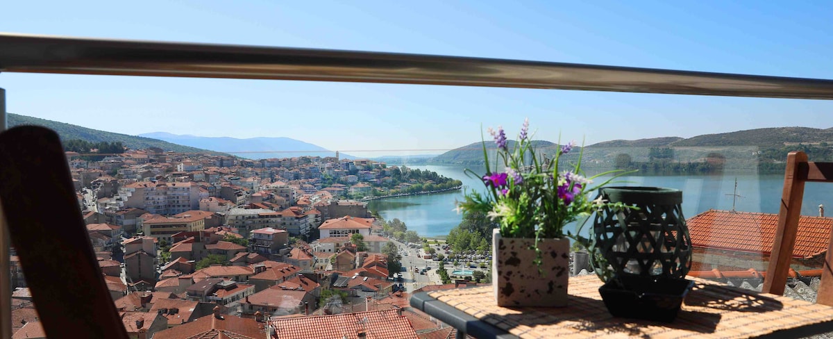 Estúdio totalmente novo, aconchegante e lindamente decorado, ideal para casais e famílias, com vista panorâmica deslumbrante do lago de Kastoria! Há um quarto com 2 camas de solteiro (ou 1 cama de casal) e uma varanda onde você pode desfrutar da vista deslumbrante enquanto relaxa. A cozinha está totalmente equipada com forno, fogão, geladeira, chaleira, etc. para a preparação de lanches e refeições. Fica a apenas 150 metros do centro da cidade. Estacionamento gratuito disponível.