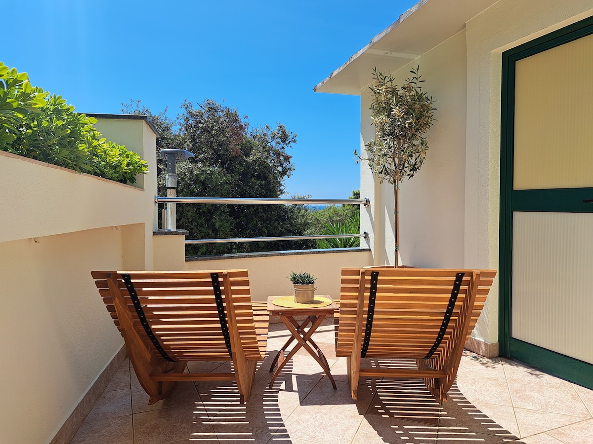 O apartamento de 60 m 2 é composto por um quarto com uma grande cama de casal, uma casa de banho, uma espaçosa sala de estar com uma cozinha, uma antessala e uma varanda. Toda a parede sul voltada para o mar, que é de vidro, por isso o espaço é iluminado e com uma varanda faz um lugar. O apartamento está localizado no terceiro andar da casa, muito perto do centro da cidade (5 minutos a pé agradável junto ao mar), e tem uma varanda com vista aberta para o mar e as ilhas, uma vez que a casa está localizada na primeira fila junto ao mar.