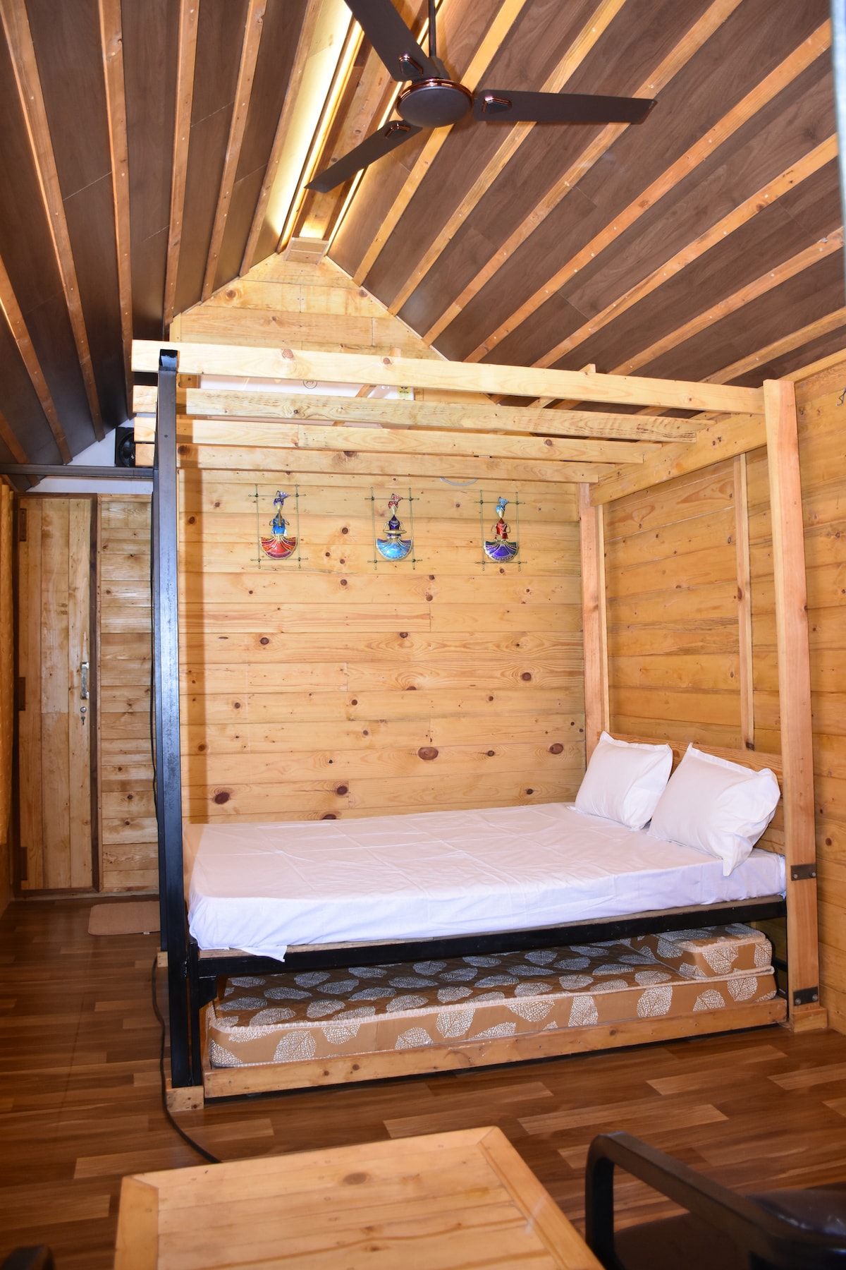 Stylish pinewood cottage set in a peaceful, elevated location near Ganpatipule–Malgund. This cozy retreat features a comfortable bedroom with an attached washroom and a relaxing living area, perfect for unwinding. Surrounded by calm nature and fresh air, it offers a serene escape away from the crowds. Thoughtfully designed for comfort and privacy, it truly feels like a home away from home—ideal for couples, solo travelers, or small families seeking a quiet coastal getaway.