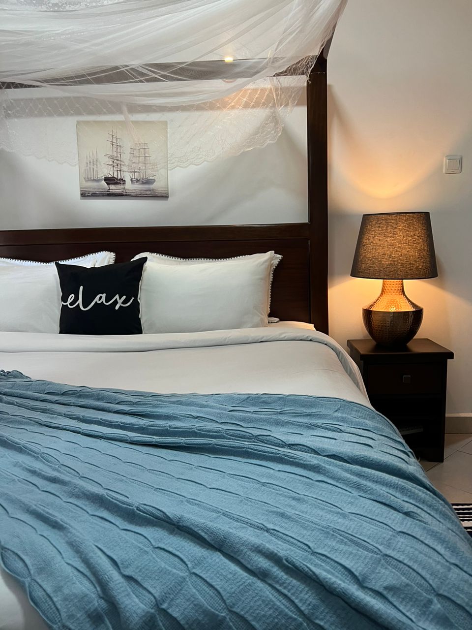 Fuja para este luxuoso condomínio de 1 quarto à beira do lago, a apenas 20 minutos do Aeroporto Internacional de Entebbe. Perfeito para uma estadia de fim de semana e ideal para trabalhadores remotos que procuram um ambiente sereno e elegante. Possui uma cama queen size, uma cozinha totalmente equipada, um banheiro moderno, Wi-Fi de alta velocidade e uma acolhedora área de estar com uma smart TV. Desfrute de conforto perfeito, comodidades modernas e um ambiente tranquilo para trabalho ou relaxamento. Este retiro elegante promete conforto e tranquilidade para sua viagem.