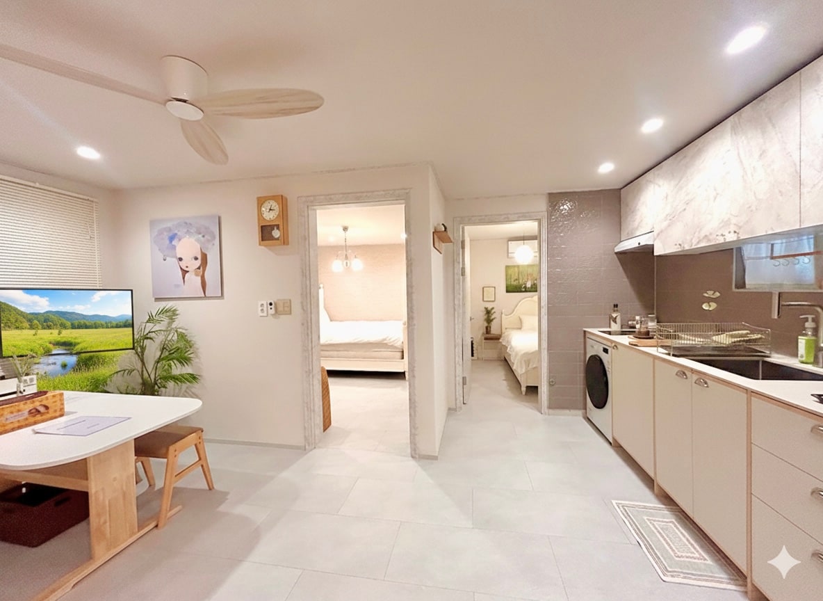 Este é o 'Hojae', um alojamento agradável localizado perto da vila de Heirima, em Paju. Como uma empresa devidamente licenciada, estamos nos esforçando para fornecer aos nossos clientes um espaço agradável e confortável. 🙏🏻 Contato do anfitrião (010_7129_1787) 🙏🏻 Descrição da acomodação - Nossa acomodação Hojae é uma acomodação que pode acomodar até 6 pessoas. - O estacionamento está disponível no espaço de estacionamento designado no 1º andar do edifício. - Visitas e entradas de amigos, além do número de pessoas reservadas previamente, são absolutamente proibidas (saída de todos sem reembolso se for descoberto) - Animais de estimação não são permitidos (saída total sem reembolso se pegos) - Check-in autônomo: 3h da tarde do dia do check-in (check-in antecipado não disponível) - Check-out: 11h do dia da partida (sem late check-out) - Há um total de 2 camas queen size. Apenas uma cama pode ser usada para duas pessoas. Se você quiser usar os dois, haverá um custo adicional. (Taxa adicional de 20.000 won)