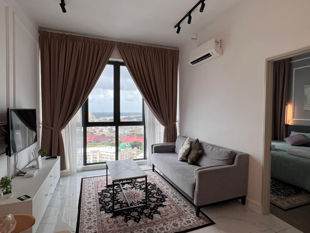 Bem-vindo à sua estadia perfeita em Kota Bharu! 🛏️ Recursos que você vai adorar: 2 camas king-size para máximo conforto Smart TV de 50"com Netflix — perfeita para noites de cinema 🏊♂️ Instalações: Acesso à piscina de borda infinita e à piscina infantil — ótimo para os pequenos se divertirem Estacionamento seguro e segurança 24h no prédio 🍜 Destaques do local: Bem no coração da cidade de Kota Bharu A uma curta distância a pé de restaurantes locais, cafés e restaurantes Perto de shoppings, pontos culturais e lojas de conveniência