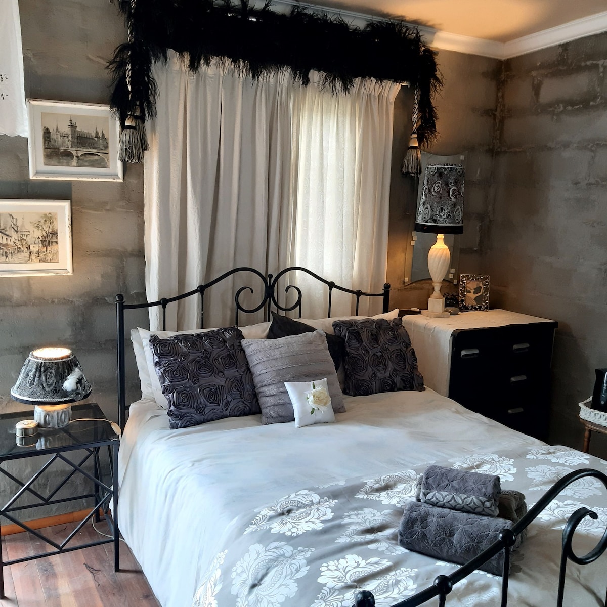Este quarto para 4 pessoas é a parada na floresta ideal viajando na N2, entre a Cidade do Cabo e Addo (Port Elizabeth), relaxe sob nossa grande árvore ou explore a área. No quarto há uma pequena cozinha, mas você é muito bem-vindo para usar a cozinha comunitária na casa principal também. Cama de casal e sofá-cama, área de chuveiro em plano aberto no quarto, com uma cortina divisória. Sua escada leva à sua varanda privativa com vista para a floresta. 2 cães, 2 gatos, Roger, o pavão, compartilham a propriedade conosco.