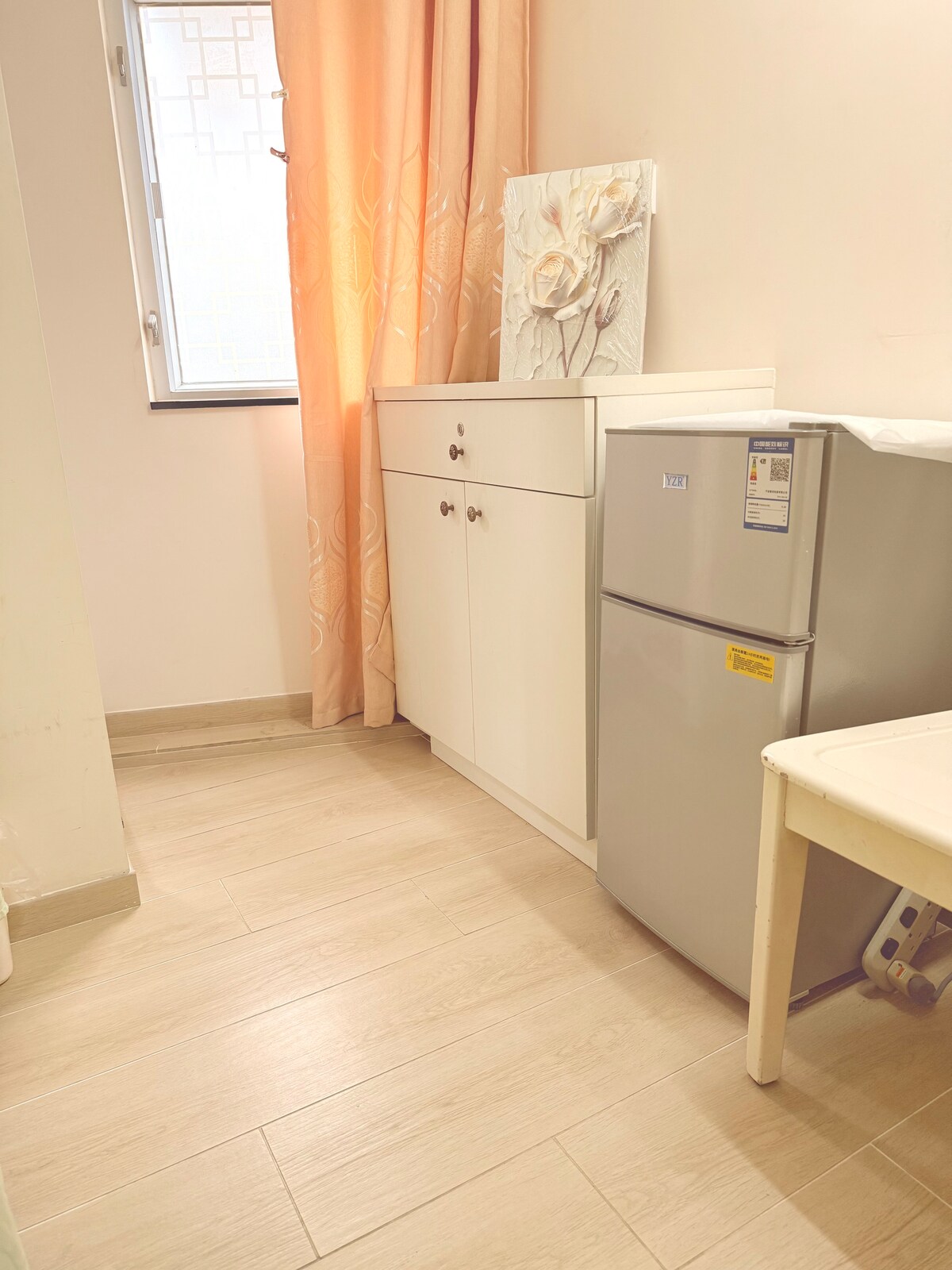 Quarto individual com cozinha e máquina de lavar roupa