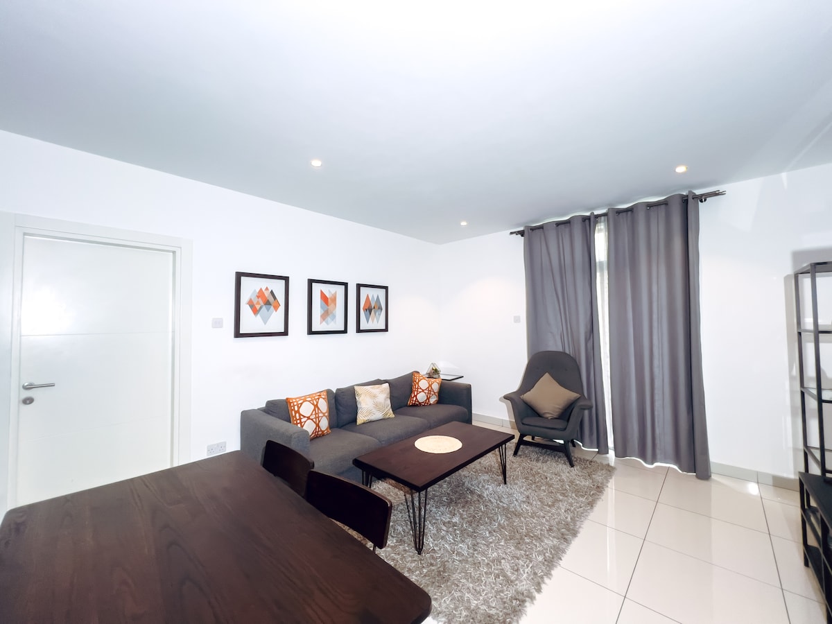 Our modern 2 Bedroom - 2.5 Bathroom Apartment offers the perfect blend of comfort, convenience, and community. The apartment if full suit with everything you need. -24/7 security for your peace of mind -Backup Generator to ensure uninterrupted power supply -Reliable water supply and internet connectivity - Club House -Pool/Gym/Garden/Water Fountain -Air conditioning for a comfortable stay - 15 minutes from the airport -5 minutes from hospital, grocery store, etc -onsite office management