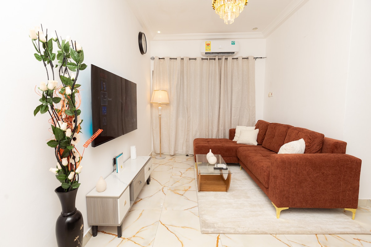 Bem-vindo a Doreen Deluxe é um luxuoso apartamento de 2 quartos e 2,5 banheiros no 1º andar em Lakeside, Accra. Ambos os quartos são suítes, oferecendo conforto e privacidade. Desfrute de uma cozinha moderna com todos os eletrodomésticos, áreas de estar espaçosas e roupas de cama macias, Wi-Fi super-rápido e ar condicionado. O grupo gerador de reserva garante eletricidade. Relaxe no terraço privado e explore o bairro sereno com parques, restaurantes e comodidades nas proximidades. Relaxe e relaxe neste espaço calmo e elegante.