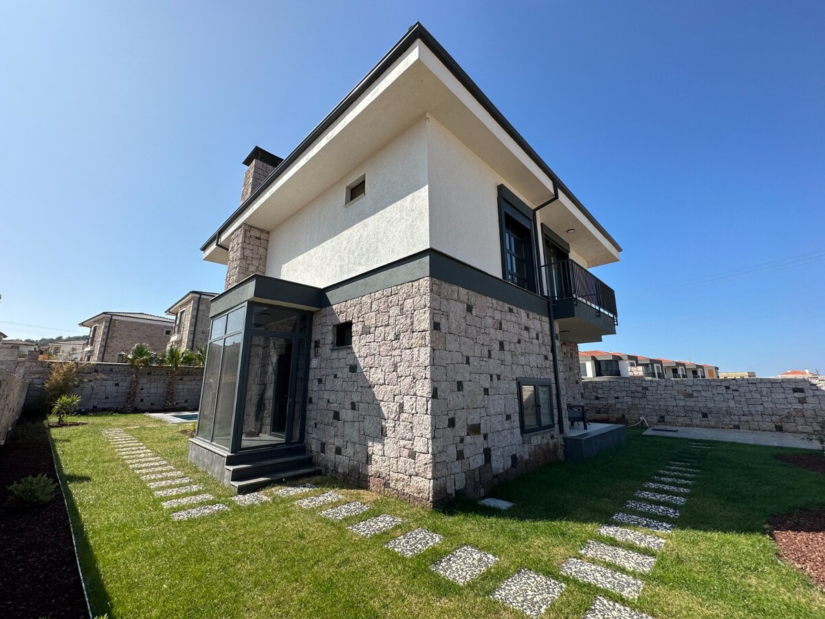 #sweetgardenhouse Em Dikili, a pérola do Mar Egeu, uma experiência de acomodação inesquecível em meio à natureza espera por você. Esta vila privativa, que pode acomodar até 9 hóspedes, oferece férias tranquilas e confortáveis com comodidades como uma área de gramado verdejante de 3.000 m², piscina privativa, área para churrasco, pérgula, amplo jardim e vaga de estacionamento privativa. Nossa vila é ideal para famílias grandes, grupos de amigos ou qualquer pessoa que queira passar um tempo na natureza. Acorde longe da agitação da cidade, em um ambiente seguro e tranquilo, com a companhia apenas dos sons dos pássaros.