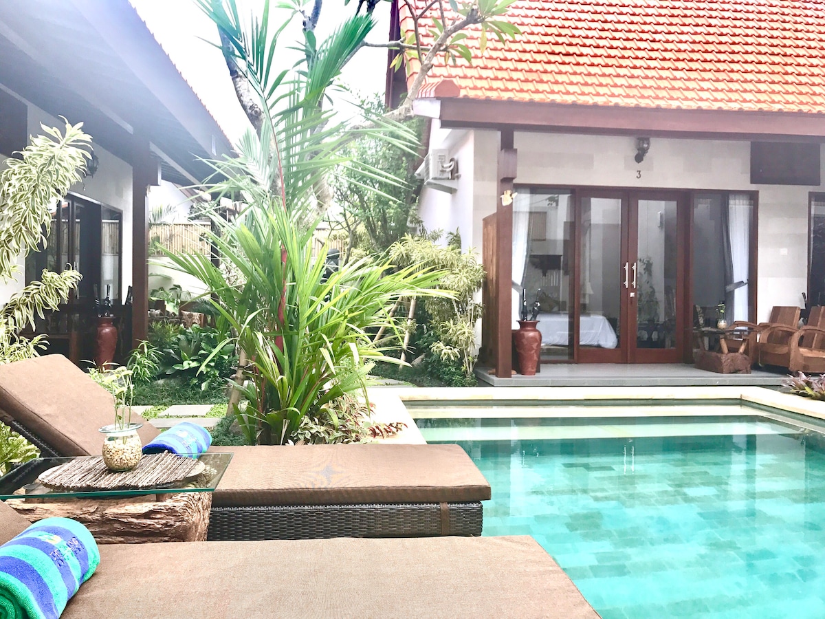 .central Canggu, quarto privado, piscina, chuveiro quente