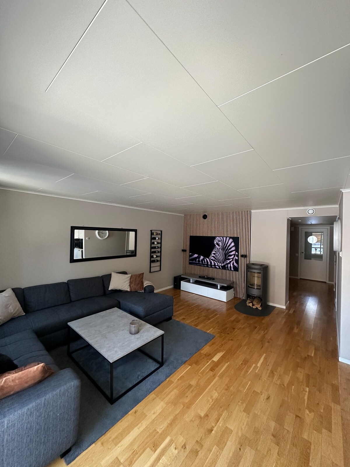 Leve toda a família a esta grande e espaçosa casa geminada em um bairro tranquilo. Com apenas 150 metros da mercearia mais próxima e da parada de ônibus mais próxima, o apartamento está centralmente localizado a cerca de 3 km do centro da cidade de Alta. Aqui você encontrará tudo o que precisa de comodidades dentro, e se for um bom dia de verão, pode ser apreciado ao ar livre, seja na varanda ou no terraço de frente para uma floresta de pinheiros aconchegante. No inverno, você pode ver a aurora boreal dançando pelo céu. O apartamento é mantido em cores modernas e confortáveis