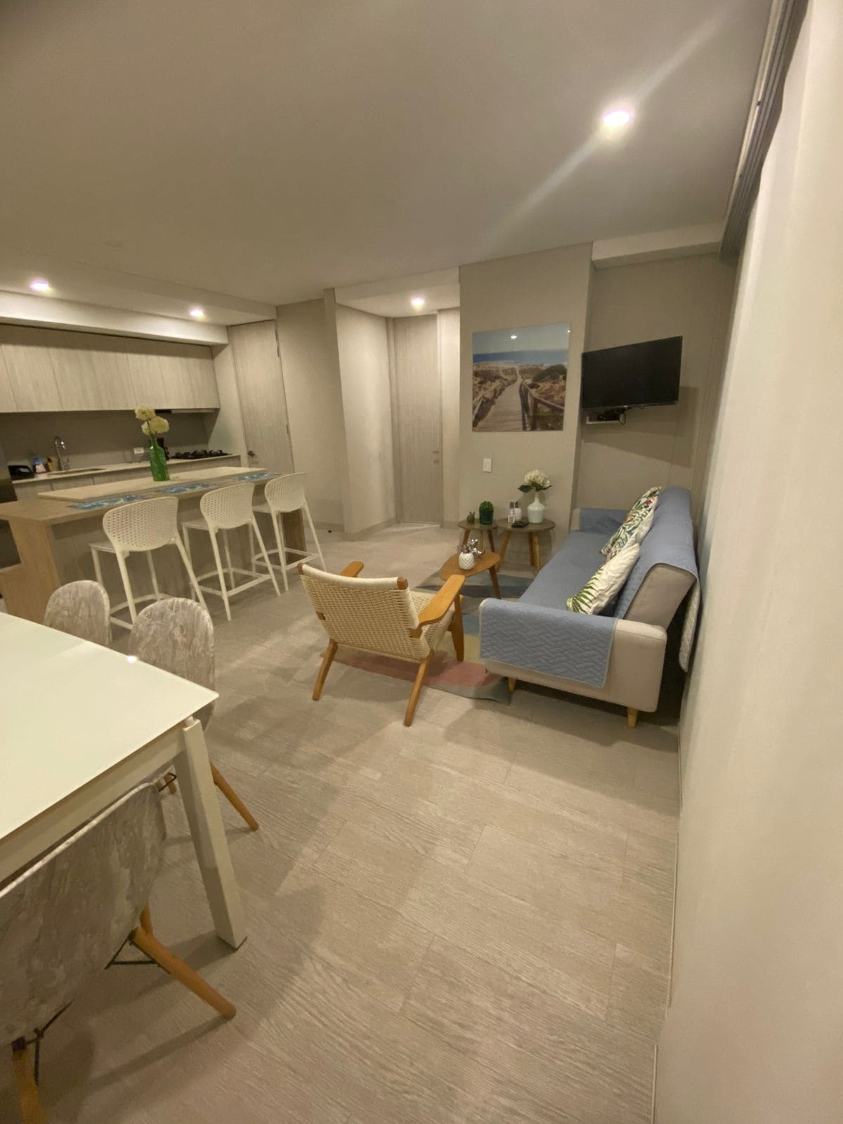 Lindo apartamento novo de um quarto com pátio privativo. Excelente localização: a 3 minutos a pé da praia, a 5 minutos do aeroporto Rafael Núñez e a 10 minutos da Cidade Murada. Terraço espaçoso com 2 jacuzzis com vista para o Caribe. Totalmente equipado com comodidades modernas. Água quente, que não é comum em Cartagena, está disponível em nossa propriedade.