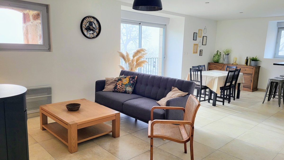 No coração da aldeia, em um antigo convento dos séculos XVI e XVIII, um duplex bastante aconchegante de 55 m2 espera por você. Localizado no 1º e segundo andar do edifício mais antigo, seu grande quarto mezanino sob o cofre, é ideal para casais. Na sala de estar, uma cama extra para 1 pessoa pode ser adicionada. Banheiro com chuveiro e vaso sanitário separado, mas exigindo passar pelo quarto. No pátio interno comum, você pode sentar-se para ler ou almoçar (móveis ao ar livre).