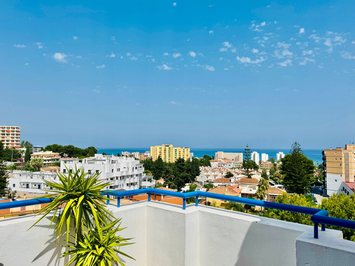 Maravilhosa vista para o mar e jardim, perto da Praia de Carihuela