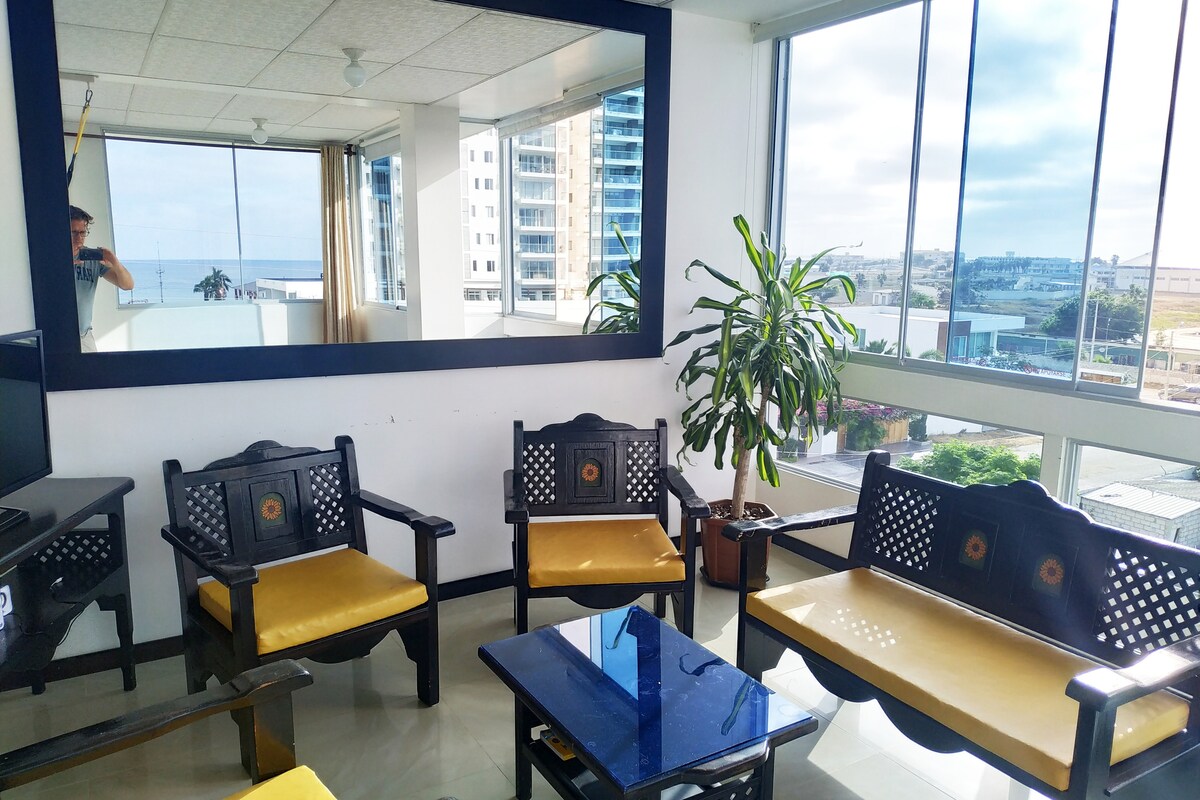 Beautiful spacious apartment in front of the beach. Wonderful ocean view. Located at Malecon Principal of Salinas, close to bars and restaurants. You can enjoy the sea with multiple activities such as swim, waverunner, boat ride, water parks and water sports. Reservations over 28 years old... PARTIES PROHIBITED