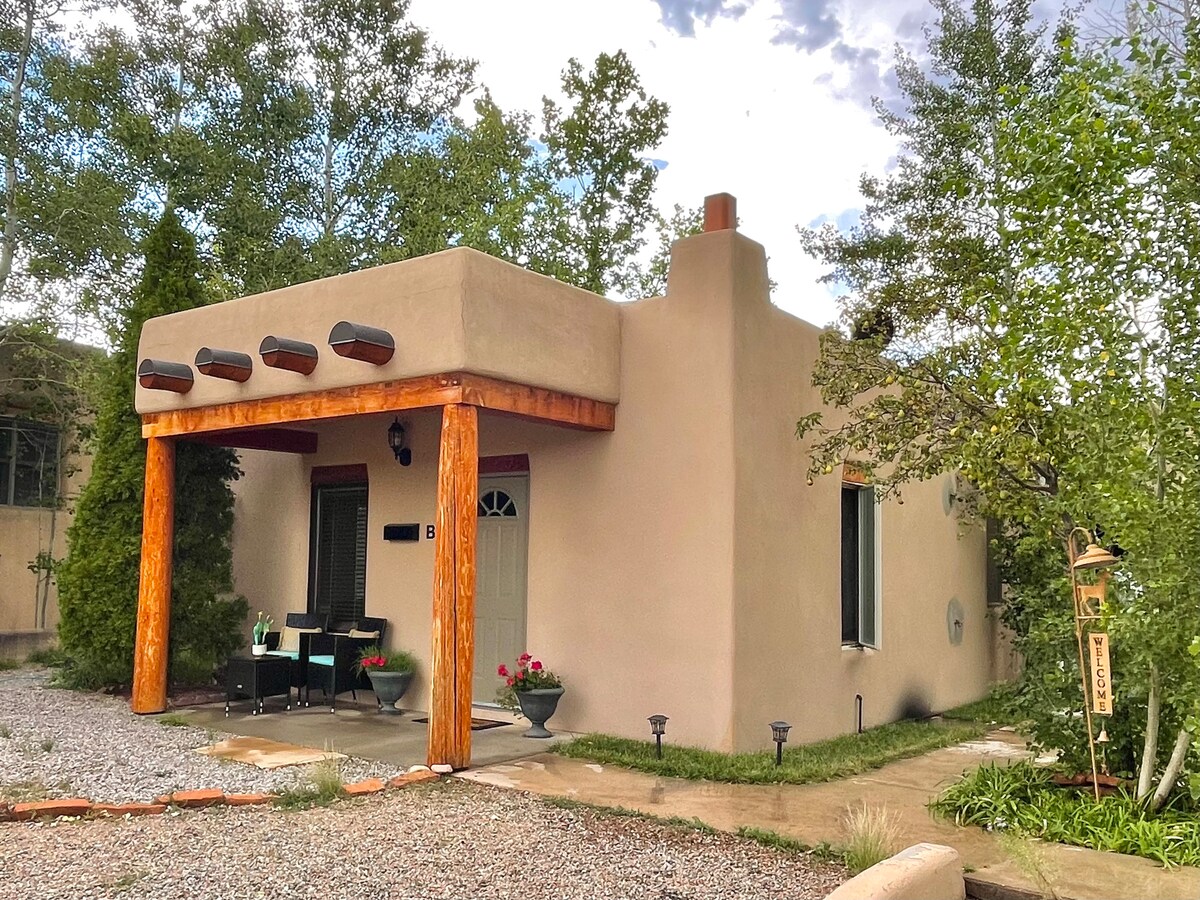 Bem-vindo a Santa Fé! Esta encantadora casa de campo estúdio e minha casa compartilham a propriedade neste bairro residencial tranquilo. A casa de campo está cheia de charme de Santa Fé com um interior aconchegante e bonito, claraboias e muita luz natural, um canto de cozinha totalmente abastecido, armários feitos à mão, azulejos mexicanos, uma cama queen-size confortável e um pátio de jardim privativo. É um refúgio tranquilo, mas com localização central, a apenas 2 km da Plaza/centro da cidade. É um lugar encantador para casais, aventureiros solitários e viajantes de negócios.