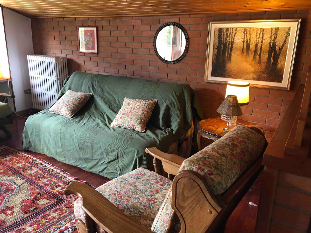 Apartamento aconchegante e acolhedor em Aosta, penúltimo andar, elevador, luminoso, grande varanda virada para o sul com vista para as montanhas em um ambiente tranquilo cercado por um jardim comum. Perfeito para visitar Aosta ou ponto de partida para os vales circundantes (7 minutos de carro para o teleférico Aosta-Pila). Supermercado orgânico a menos de 80 metros e pizzaria-restaurante a menos de 50 m. Composto por quarto, banheiro, cozinha equipada, sala de estar com sofá-cama, varanda.