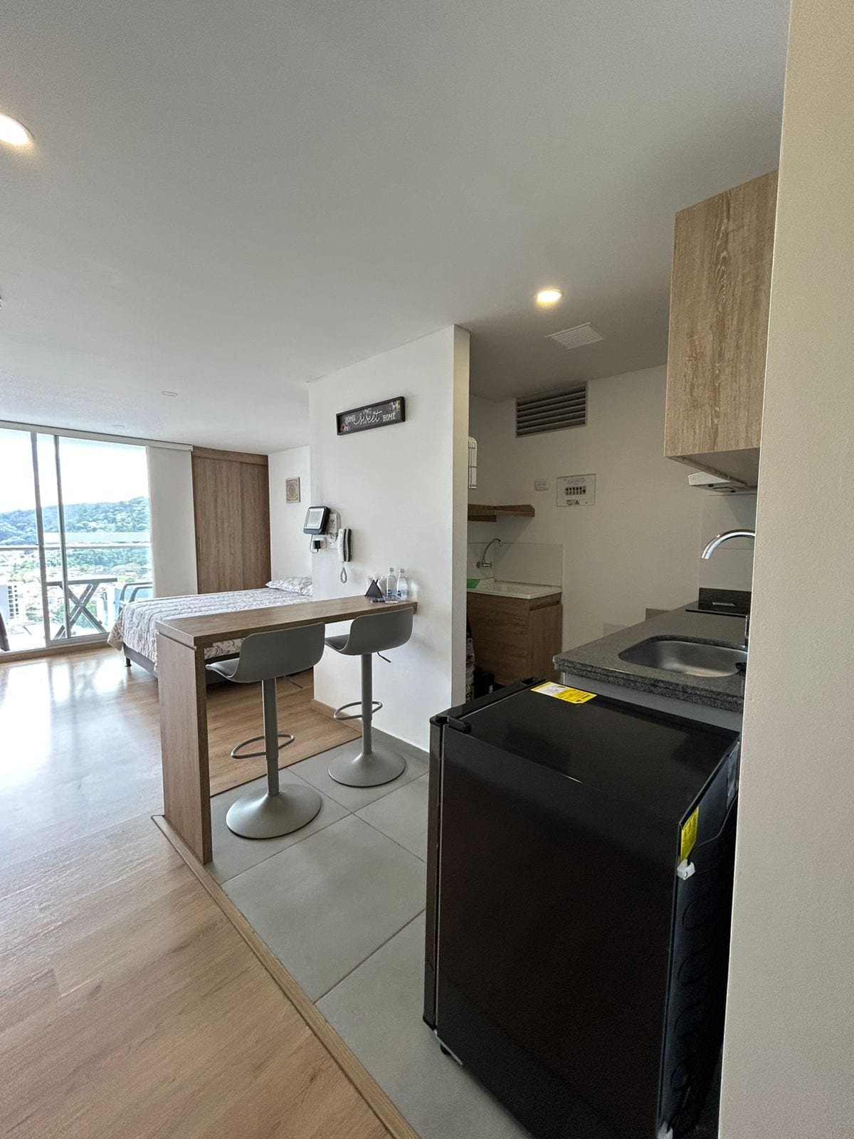 É um estúdio mobiliado e bem equipado, com serviços e seus respectivos itens, estrategicamente localizado em Manizales. Fica em frente à Universidade Autônoma de Manizales (área universitária) e a apenas 5 minutos do centro de Manizales, com transporte fácil e espaço com iluminação natural. É silencioso, confortável e tem uma boa vista da paisagem natural, onde é possível ver alguns pássaros. É um espaço pensado para unir conforto, estilo e privacidade em um único ambiente.