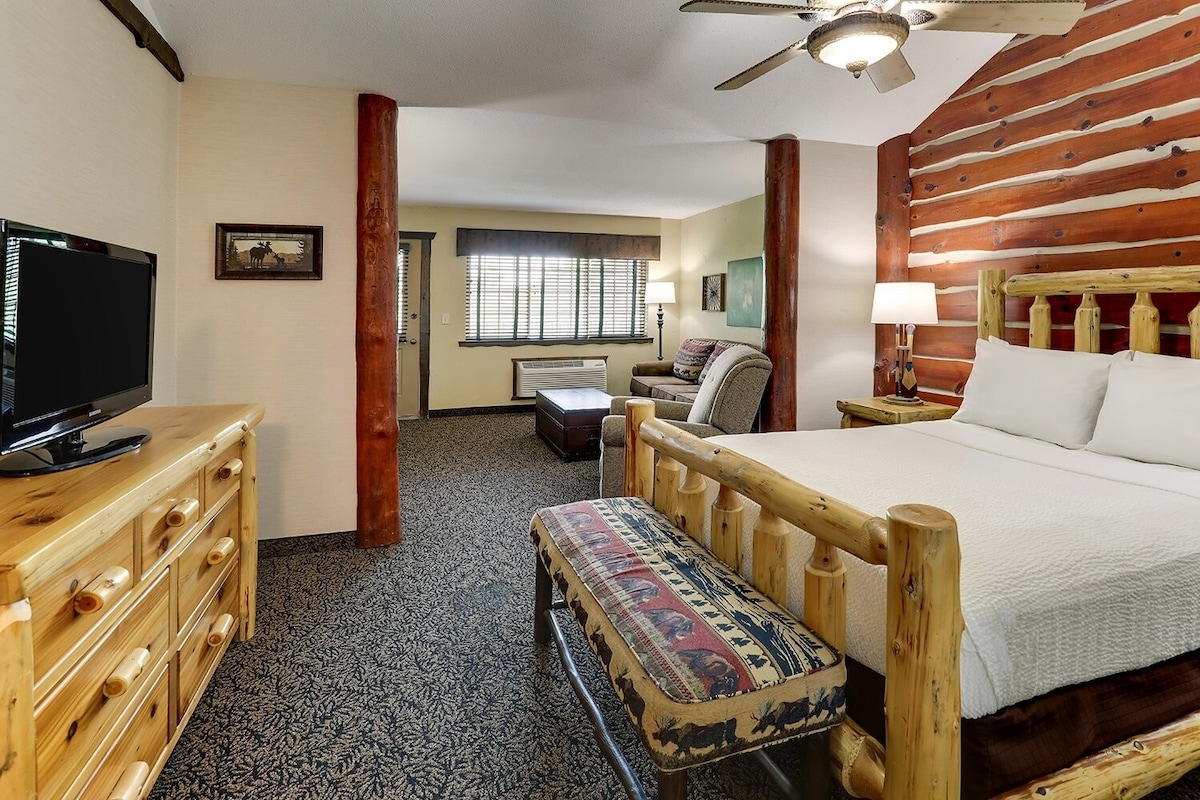 Esta cabana Warrens combina o charme rústico de um retiro remoto com os benefícios das comodidades do Three Bears Resort por uma taxa adicional. O aluguel de férias de 2 quartos e 2 banheiros tem um interior clássico de cabana e muito espaço ao ar livre para relaxar, quer você esteja sentado sob as luzes da corda perto da lareira ou grelhando no deck da frente. Experimente as comodidades do resort, como um parque aquático interno e externo, minigolfe, jogos de fliperama, passeios e trilhas!