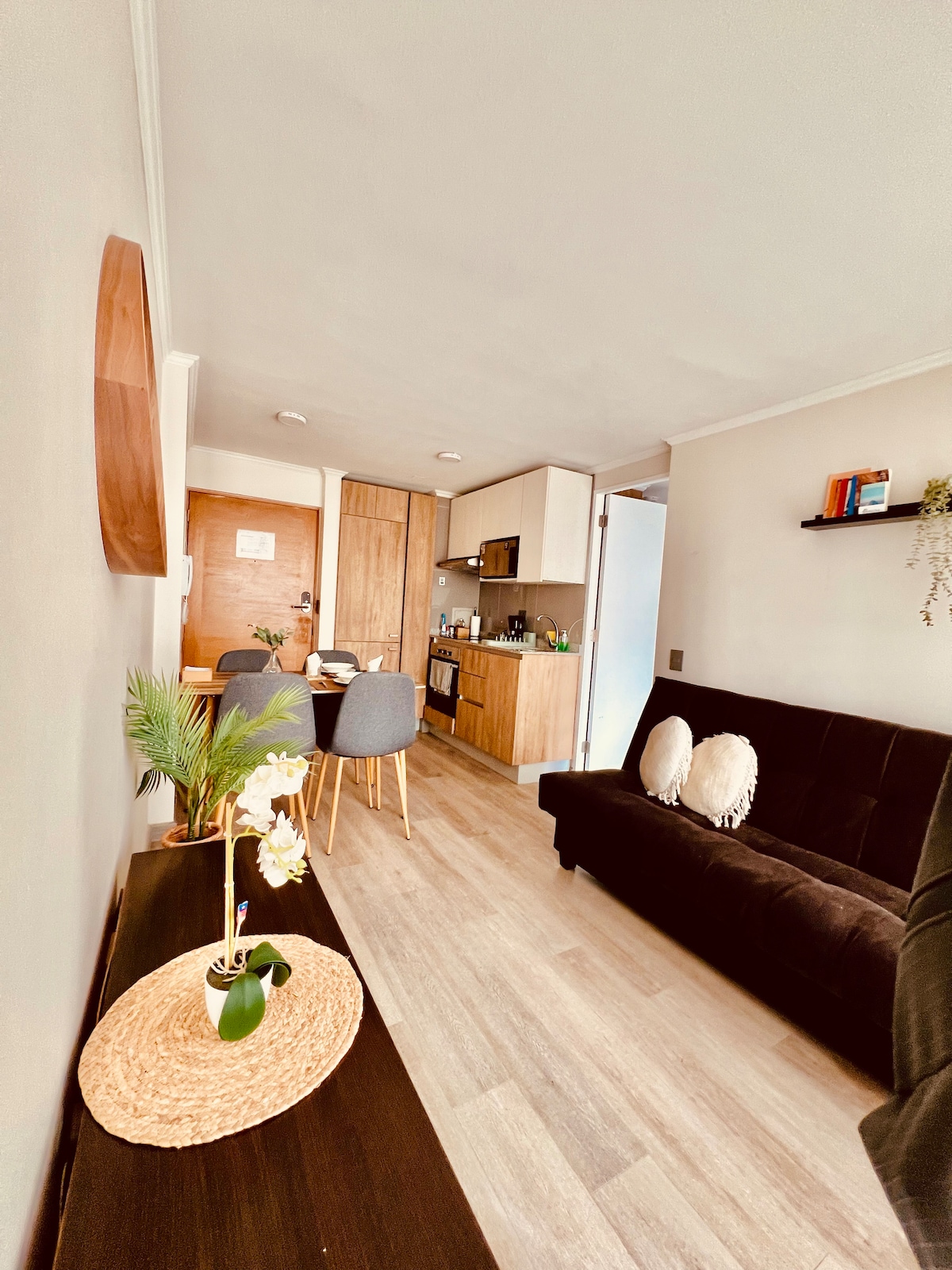 Hospédate en un moderno y acogedor estudio, totalmente equipado para dos personas, a pasos del Metro Bellavista de La Florida. Perfecto para parejas, viajeros por negocios o escapadas de fin de semana. Cercano a Centros Comerciales, Clínicas, Universidades y Estadios. Es el refugio perfecto para quienes buscan comodidad, conexión y buen gusto. Este depto. tiene la ubicación ideal para el fácil y rápido acceso a la Montaña 🏔️, viñas 🍇 y campo 🌿, sin perder las comodidades de la ciudad.