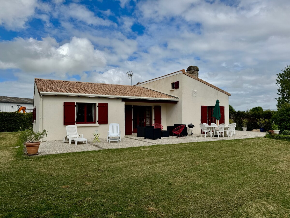 Casa idealmente localizada entre terra e mar. 15 min de La Rochelle. Todas as lojas estão à sua porta. Muito funcional. Bela sala de estar, cozinha equipada, despensa, banheiro com chuveiro, toalete separado, 3 belos quartos com armários, incluindo 1 não anexo. Amplo terraço sombreado por uma persiana. Nova banheira de hidromassagem de 3 lugares para relaxar depois de um dia na praia. Piscina aquecida. (Fotos de 20 de abril de 2026) Pátio sombreado encantador. Jardim amplo e fechado, sem vizinhos à vista. Roupas de cama estão incluídas.