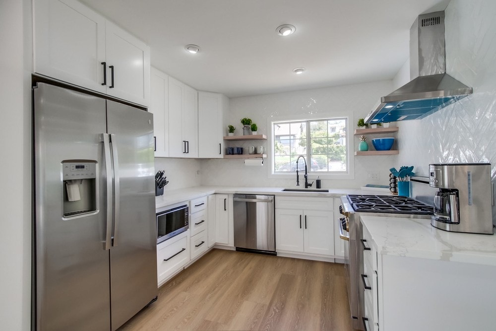 Completely remodeled. Just minutes from many beaches, the famous cove and La Jolla Village. This home boasts modern amenities and an amazing outdoor space including fire table, barbeque and 65" Smart TV. King bed in the master suite and queen beds in the other two bedrooms. Multi-head, walk-in showers with floor to ceiling custom tile. Sound in every room & Smart TV's throughout. Gourmet kitchen, and complete indoor/outdoor living with 5 sliding glass doors and a 13 ft. opening glass wall.