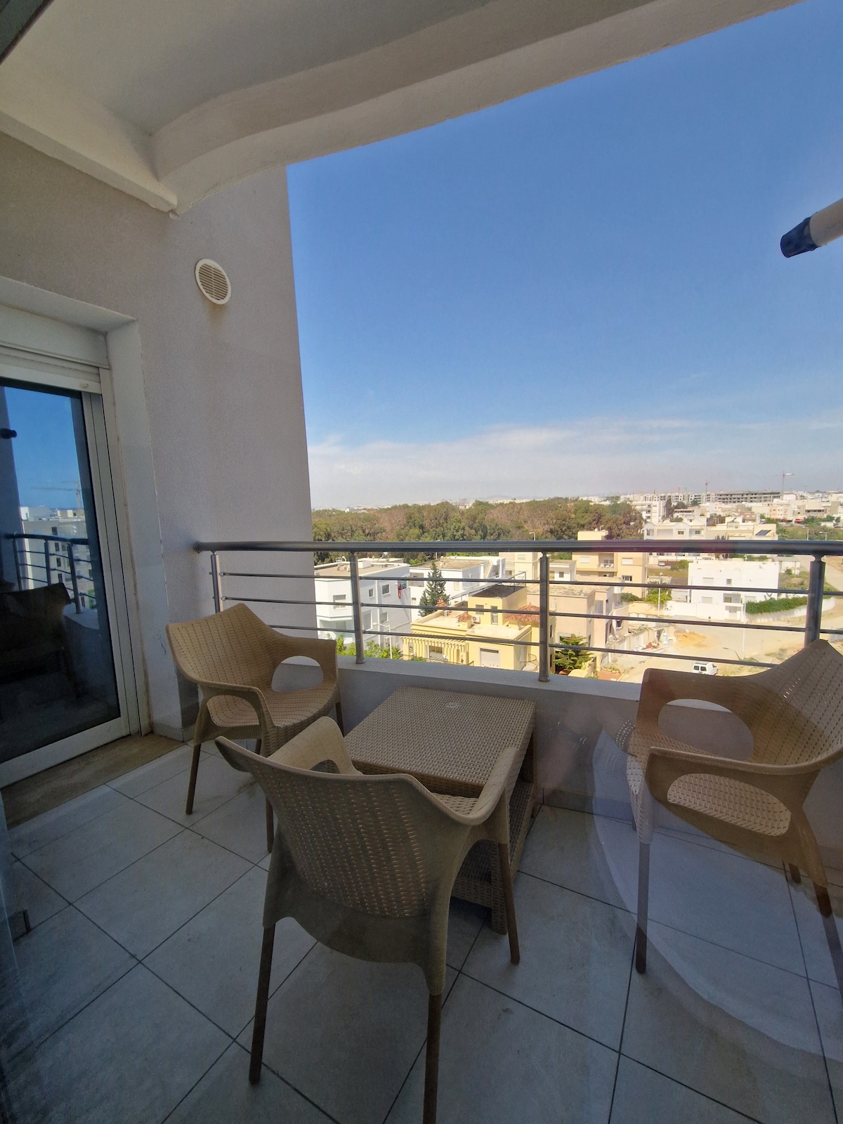 Relaxe neste alojamento tranquilo e elegante. É um apartamento luxuoso novo, localizado no térreo de um prestigioso complexo residencial no coração da nova Soukra, perto da clínica Soukra e de todas as comodidades, a 5 minutos do Carrefour, do Tunisia Mall e da cidade de Marsa e a 10 minutos da praia de carro. A residência é bem protegida com câmeras de vigilância e dois guardas 24 horas por dia, 7 dias por semana. Bairro rico em comércios.