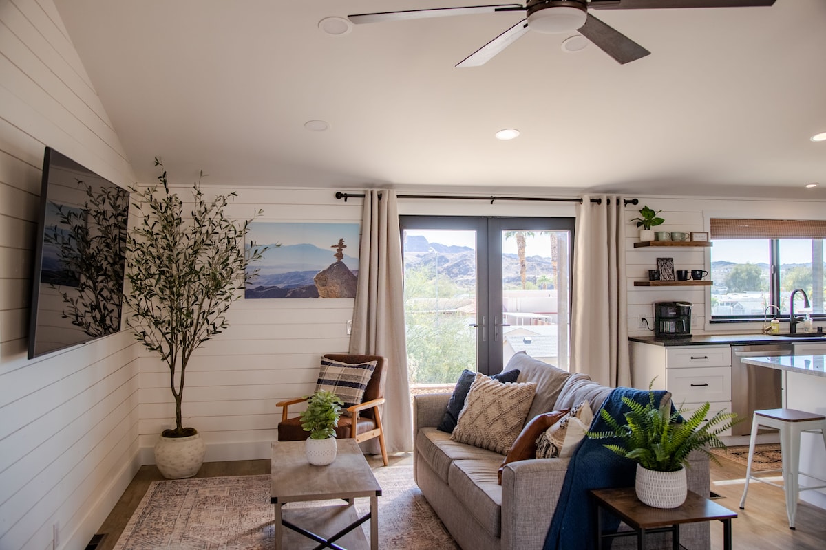 2 quartos, 2 banheiros localizados em Hillcrest Bay com vista para Havasu Springs, Lake Havasu e o Refúgio Bill Williams. A casa foi atualizada com nova pintura, novas penteadeiras, bancadas e pisos atualizados em todo o local. Situa-se diretamente entre o Lago Havasu e Parker Arizona, e fica a 1,6 km do rio Colorado e a menos de 1,6 km da rampa de barcos do Lago Havasu. A casa está totalmente equipada e tem uma máquina de lavar/secar roupa em um galpão separado. Tudo o que você precisa para andar de barco, pescar, caminhar, andar de bicicleta, etc.