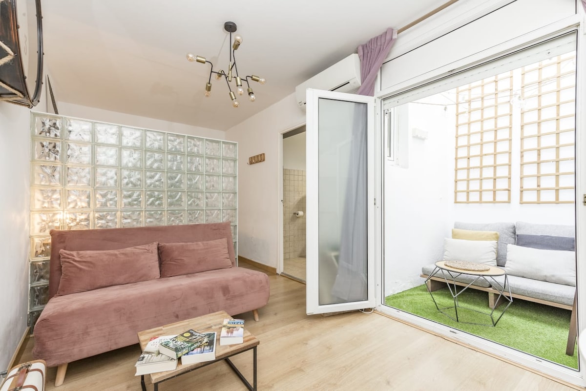 It's a stylishly decorated loft with it's own terrace. Located 50 meters from the Metro L5 Sant Pau and 5 minutes from the Sagrada Familia. The apartment is located in a local and quiet area with several restaurants around and a supermarket next door.